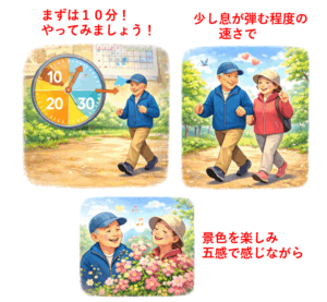 ウォーキングは、無理なスピードで歩く必要はありません。